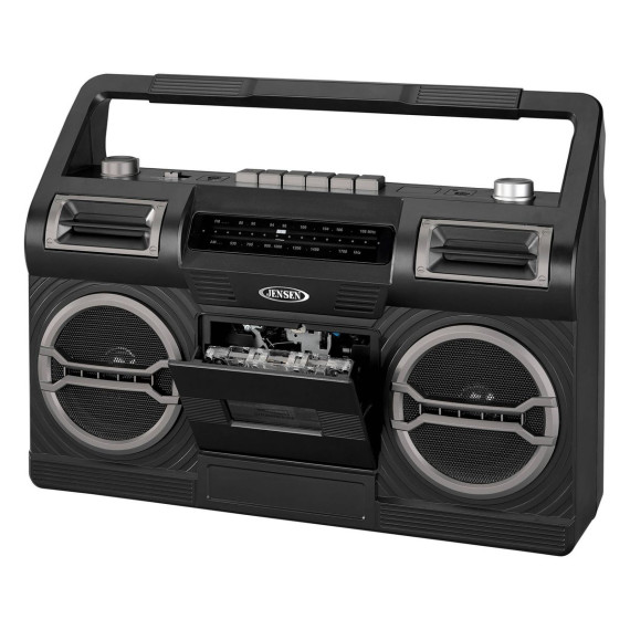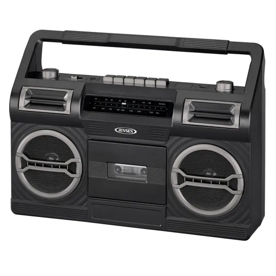 JENSEN Portable AM/FM Radio with Cassette Player/Recorder and Built-in Speakers - Black