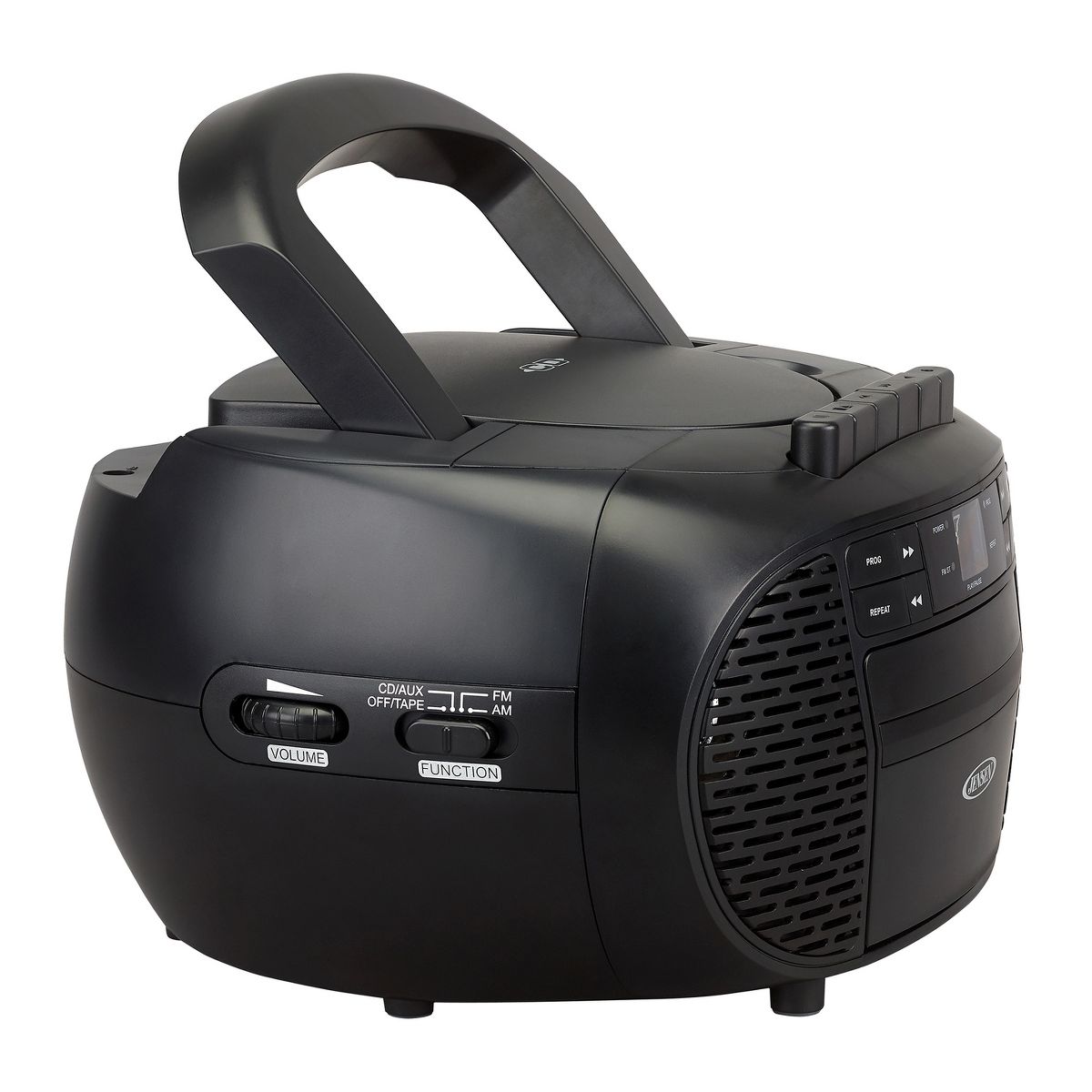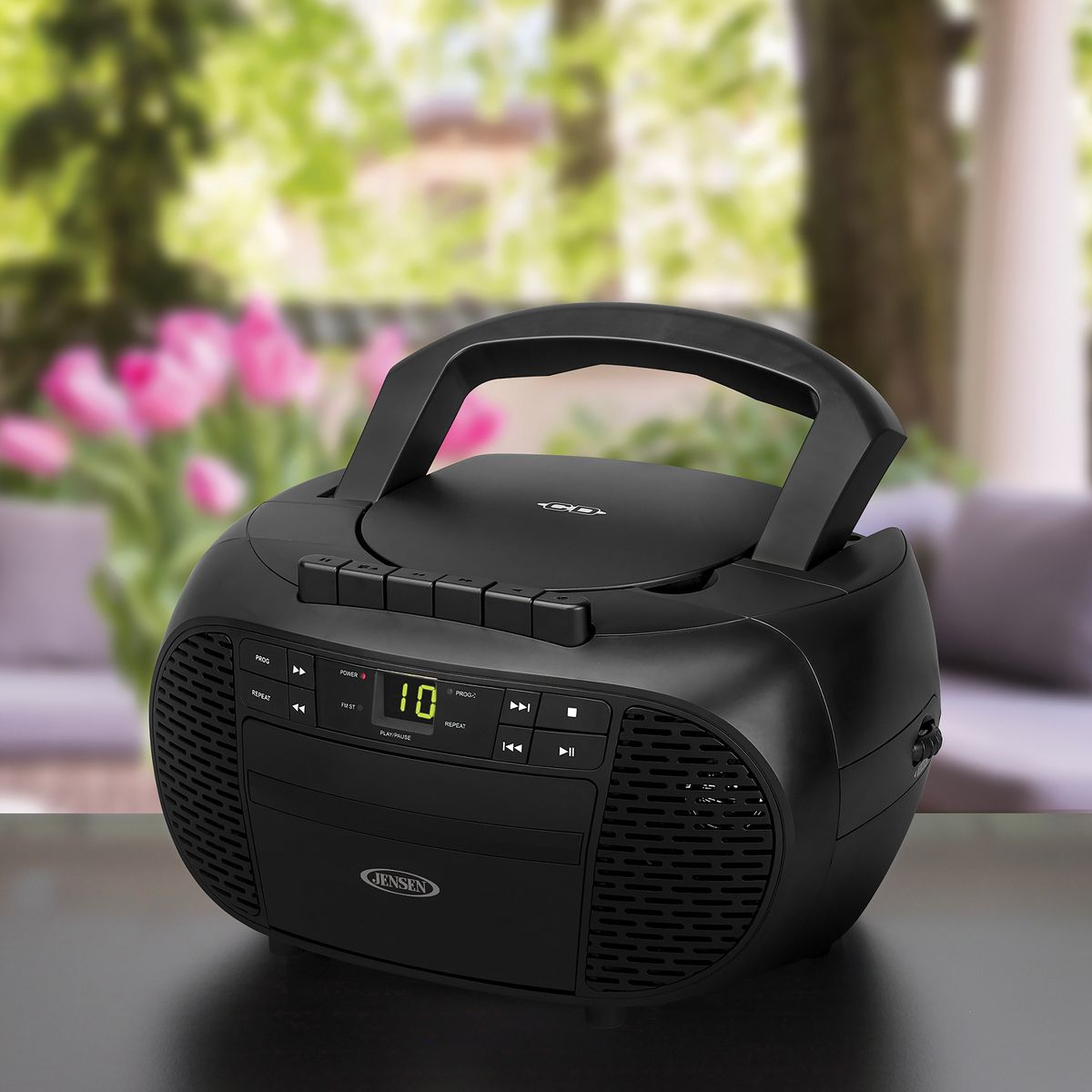 JENSEN® Portable Bluetooth® CD Music System with Built-in Speakers, Cassette Player/Recorder, AM/FM Radio, and Aux, CD-550ABT (Black)