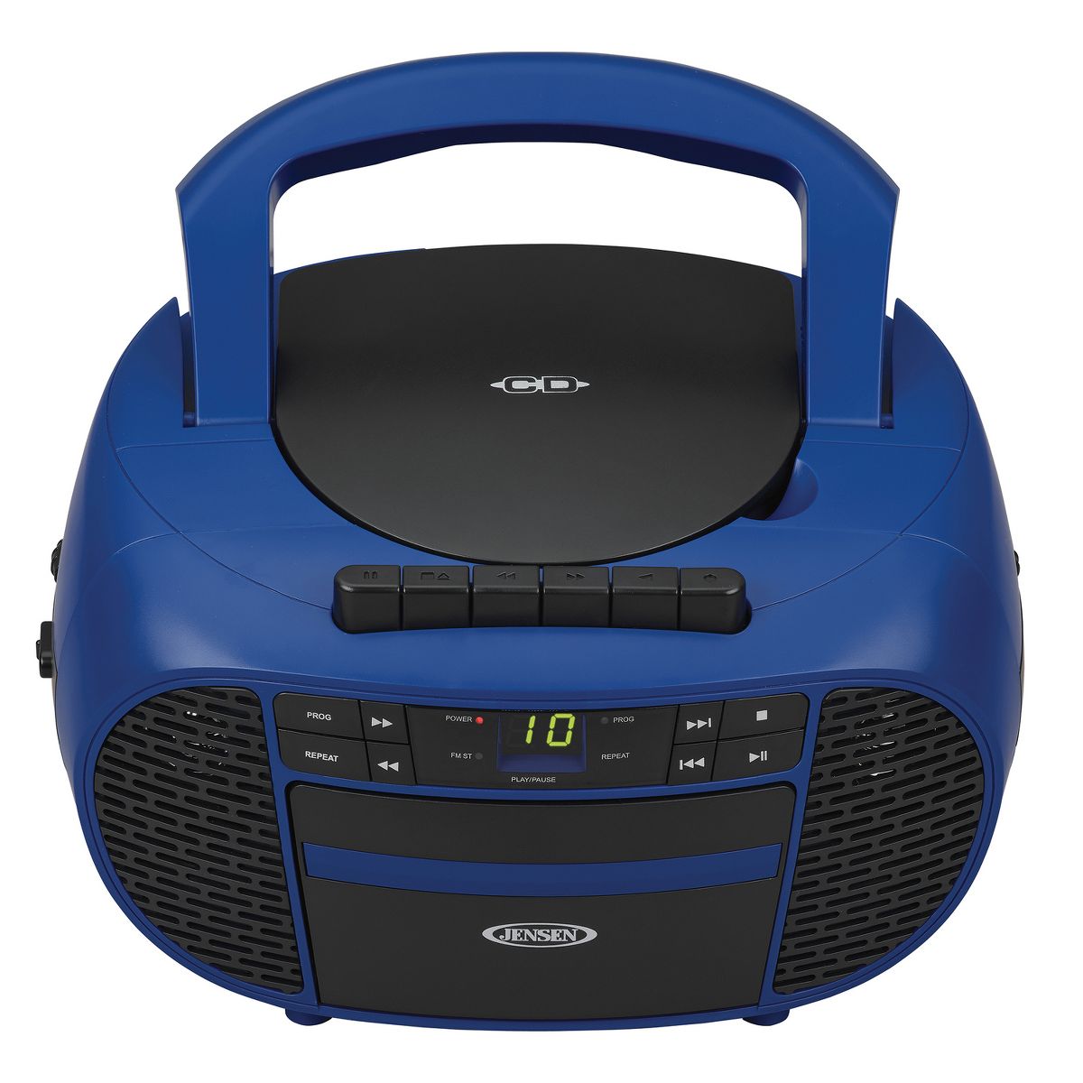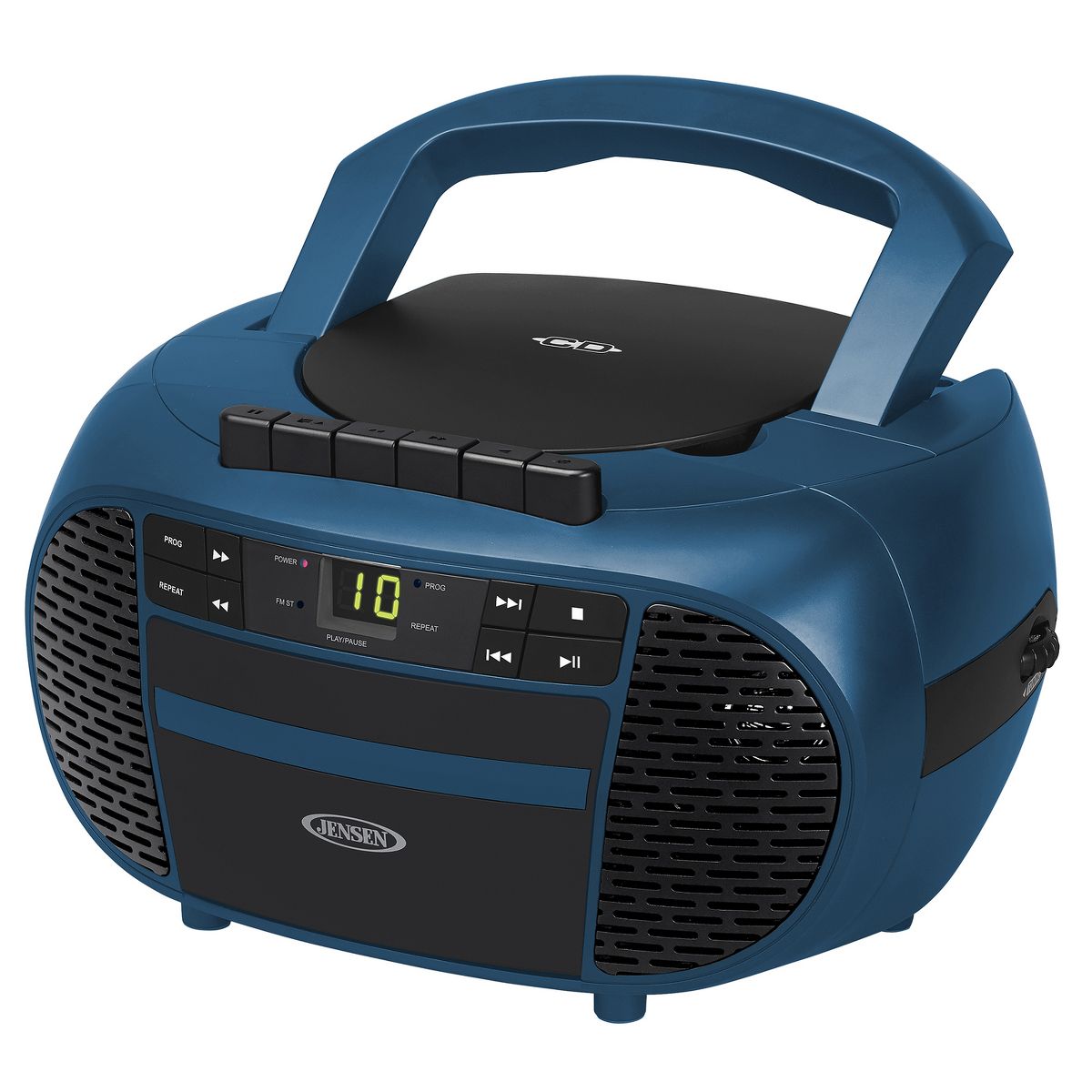JENSEN® Portable CD Music System with Cassette Player/Recorder and AM/FM Stereo Radio, CD-550 (Blue/Black)