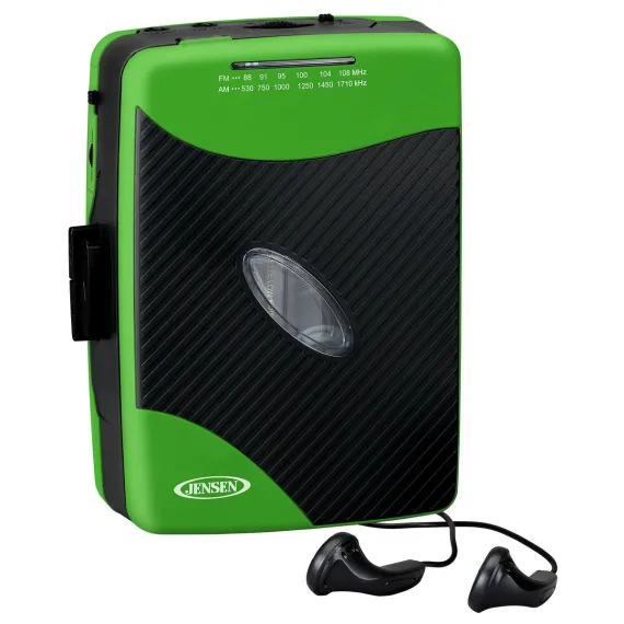 JENSEN® Portable Stereo Cassette Player with AM/FM Radio and Earbuds, SCR-75 (Green/Black)
