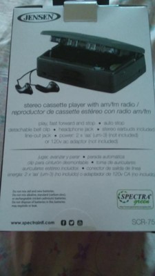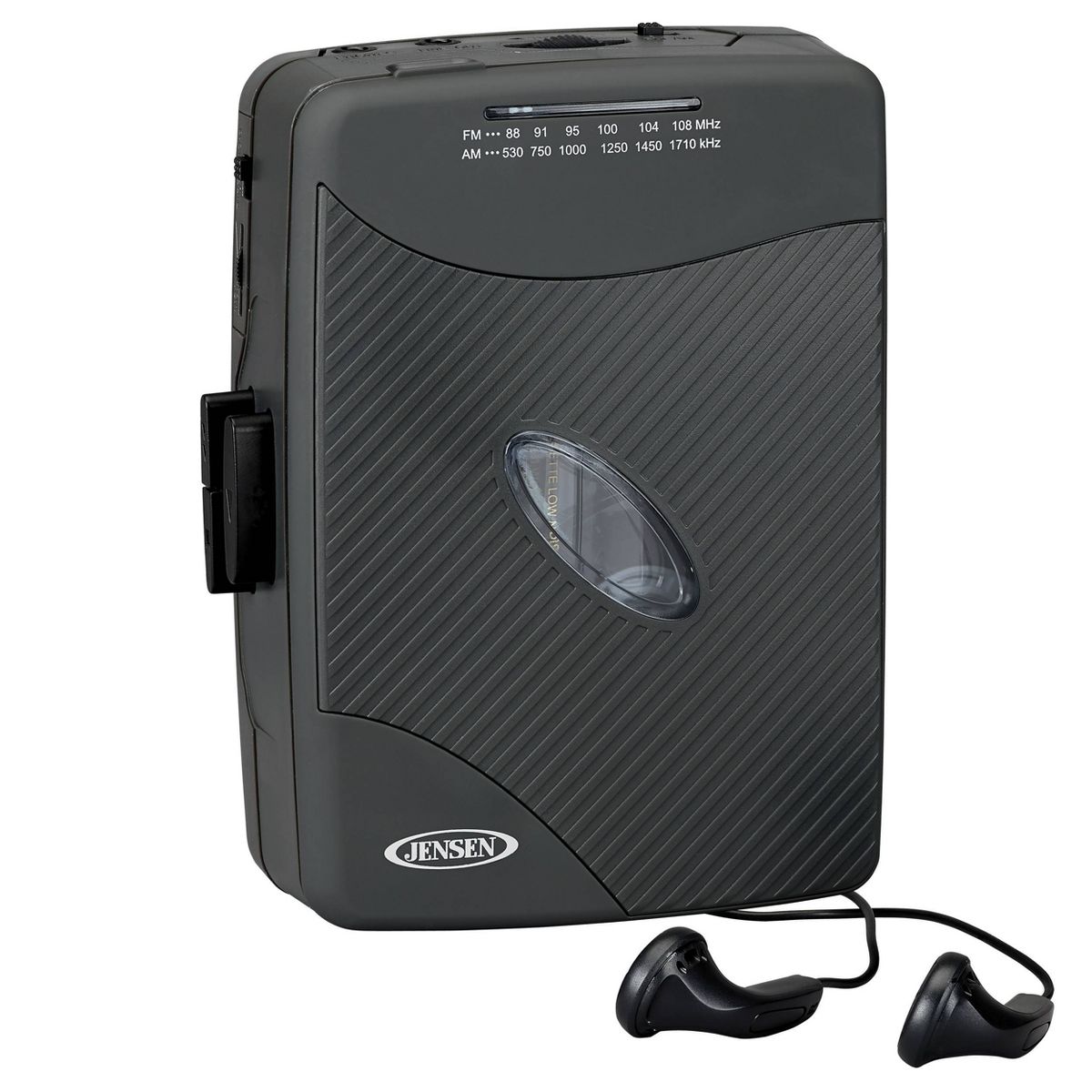 Whether you're listening to books on tape or you've just revisited a collection of your old mix tapes, the JENSEN SCR-75 Stereo Cassette Player with AM/FM radio is perfect for you. Weighing in at only a few ounces, the SCR-75 is lightweight, portable and offers a sleek design with rubberized accents. Listen to your favorite radio stations or cassette tapes with the included stereo earbuds. The unit also features a line-out jack, so you can connect the player to your home stereo system or a set of portable speakers.