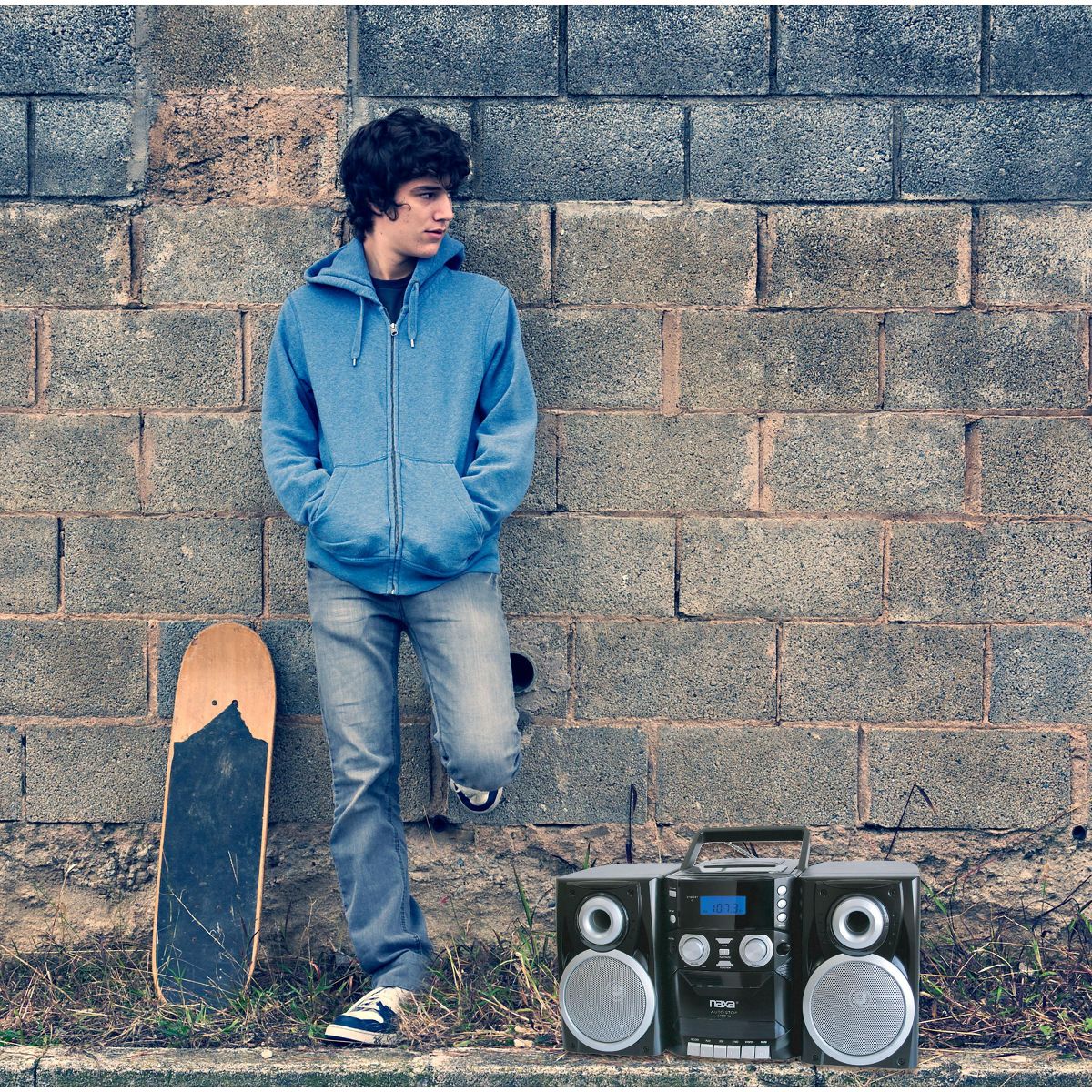 Listen to music on the go or at home with this Naxa Portable CD Player (NPB-426). Enjoy superior sound from various types of media featuring a powerful bass boost system enhanced with a 110/220V dual voltage operation to produce high-quality sound at all times. This portable CD player also features a LCD display, an AM/FM radio, and detachable speakers. Listen privately with an earphone using the AUX input so you can attach other music devices.