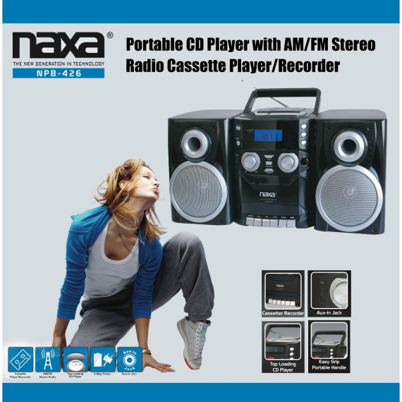 Naxa Electronics NPB-426 Portable CD Player with AM/FM Stereo Radio, Cassette Player/Recorder and Twin Detachable Speakers