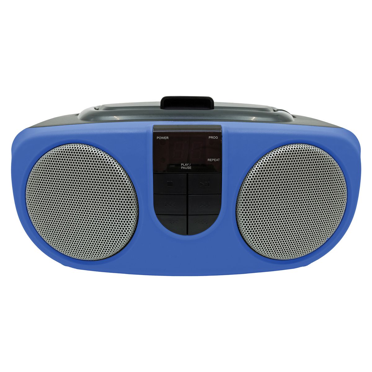 Get ready to turn up the block! This Proscan® Portable CD/Radio Boom Box lets you bring your music with you wherever you go. The CD-R-compatible CD player lets you play your favorite albums and personal mix CDs. Even if you forgot your CDs at home, the AM/FM radio lets you crank the tunes up anyway. Switch up your playlist using the program and repeat functions, and stay aware of what track you’re on with the digital display. Using the aux input, you can play audio from additional devices through the boom box. The stylish design fits into any décor so this versatile CD boom box is ideal for home or on-the-go use.
