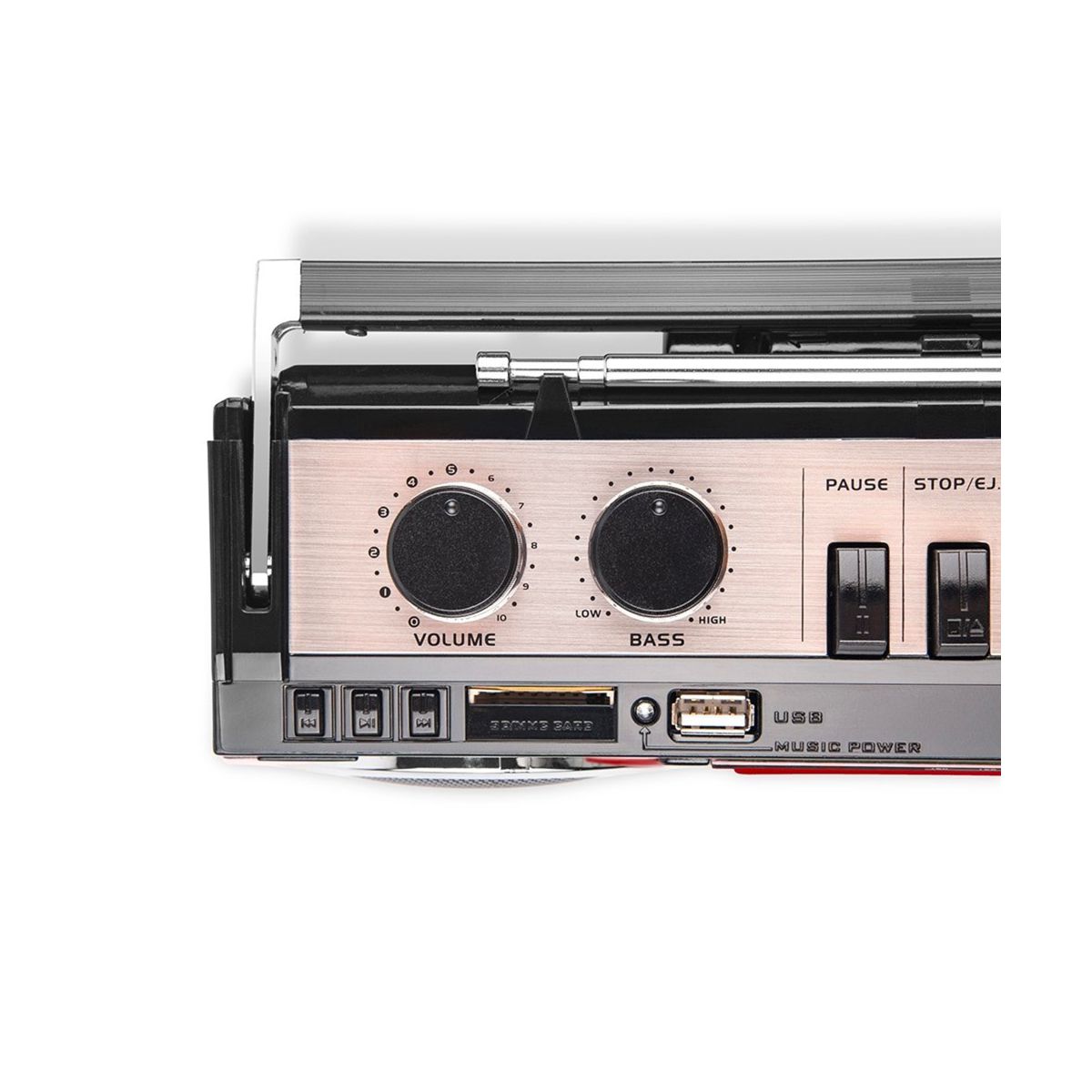 Riptunes Retro AM/FM/SW Radio + Cassette Boombox with Bluetooth and USB/SDHC Playback, RED