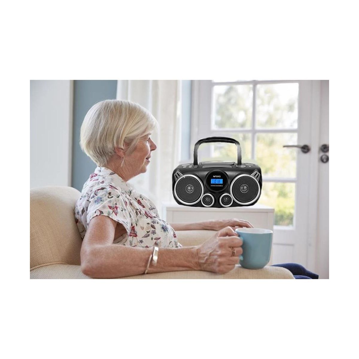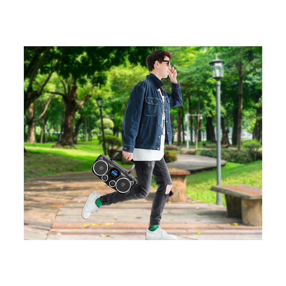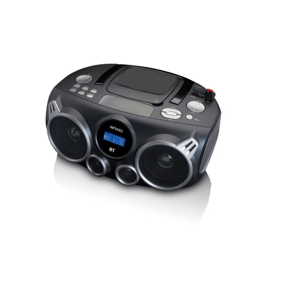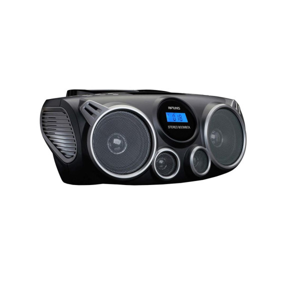 The CDB490BT Riptunes Stereo Boombox lets you play traditional and MP3 CDs, or AM/FM radio in full stereo sound. With built-in Bluetooth technology, this Riptunes Boombox allows you to wirelessly stream music from your external Bluetooth devices. A top-loading CD player enables you to play back CD /MP3 disc media. Digital AM/FM Radio tuner with 20 station preset memory for Radio programming The USB Playback & SD playback Multimedia Player plays your digital files from your USB and SD devices easily. The auxiliary audio input (3. 5mm) allows you to enjoy music from other devices thru a 3.5mm Cable and the folding carry handle makes it easy to move the unit from room to room or even to the outdoors in nice weather.