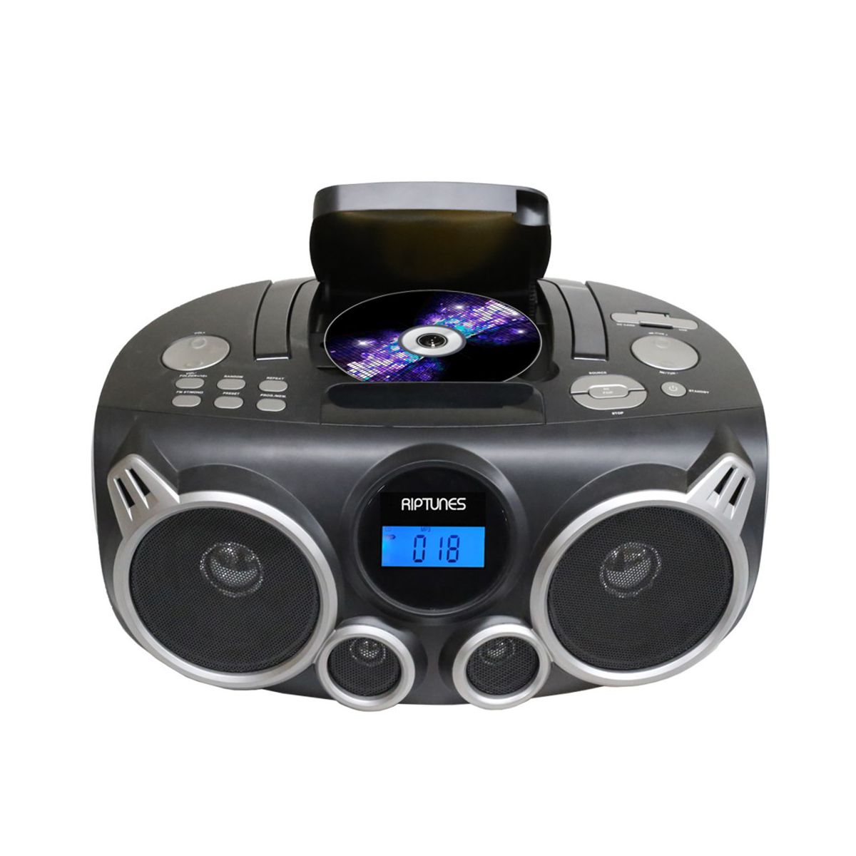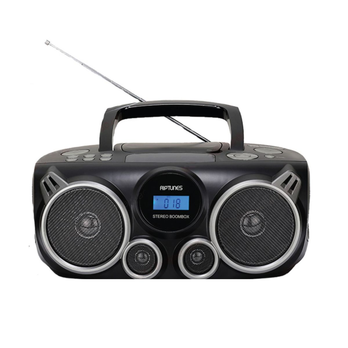 RIPTUNES Stereo Boombox + Wireless audio streaming, MP3/CD, USB/SD, Black