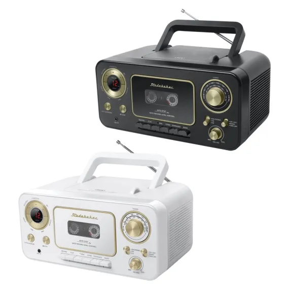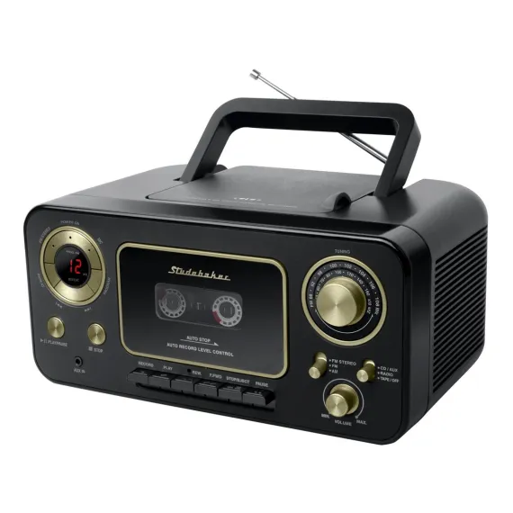 Studebaker Portable CD Player with AM/FM Radio and Cassette Player/Recorder (SB2135) - Black: Cassette Tape Playback & Built-In Microphone