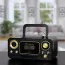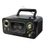 Classic retro design with great features abound on this portable CD player with AM/FM radio and cassette player/recorder. The top loading CD player is CD-R/RW compatible. The cassette player/recorder is auto stop. Other great features include aux-in jack, condenser microphone and AC/DC operation. The built-in carrying handle makes this portable unit really portable.