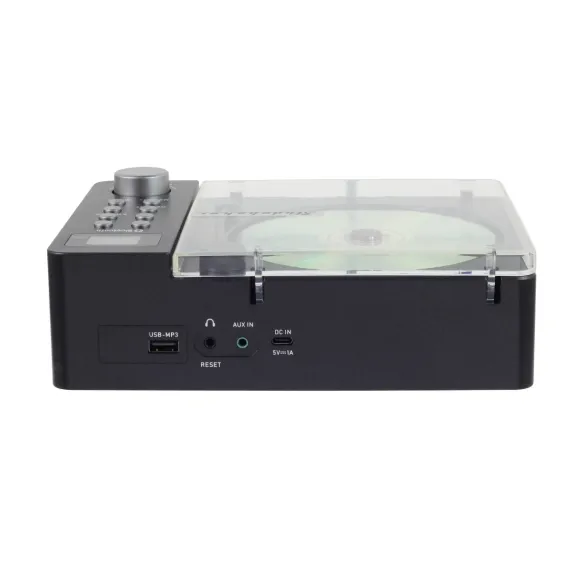 The SB3720 presents a portable and compact CD player that perfectly blends retro charm with modern features. The SB3720 offers Bluetooth connectivity for wireless streaming and is compatible with MP3 CDs and CD-R/RW discs, allowing for multiple playback options. With a built-in rechargeable battery, it’s designed for easy portability with a sleek design. Enjoy your favorite stations with the FM stereo radio and navigate effortlessly with the clear LCD display. Additional features include a USB MP3 player, auxiliary input, and headphone jack, making this unit a stylish and unique addition to your audio collection.