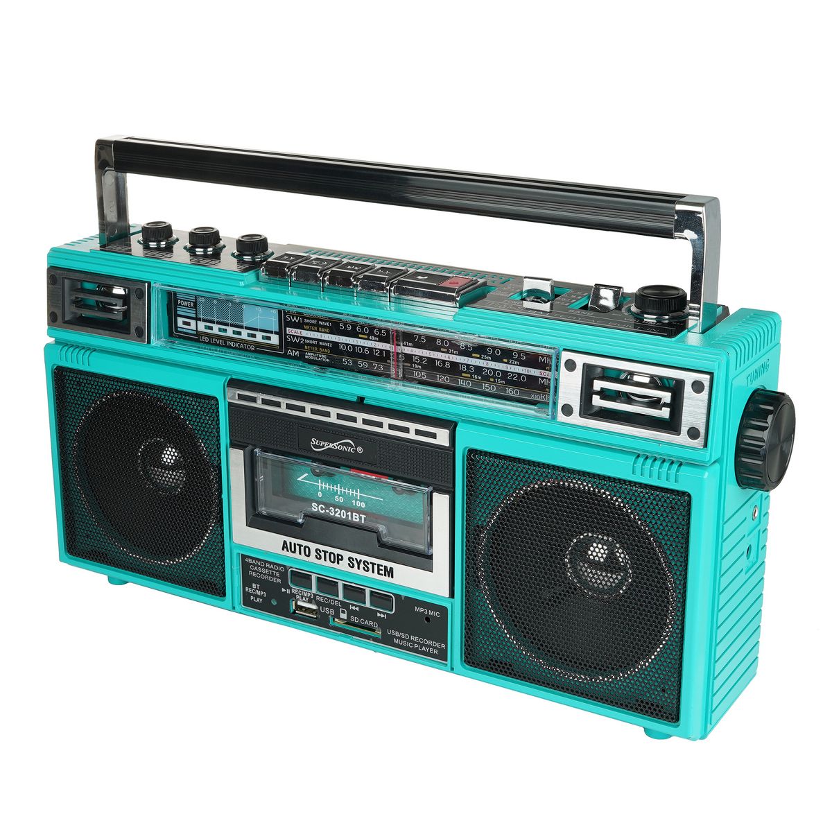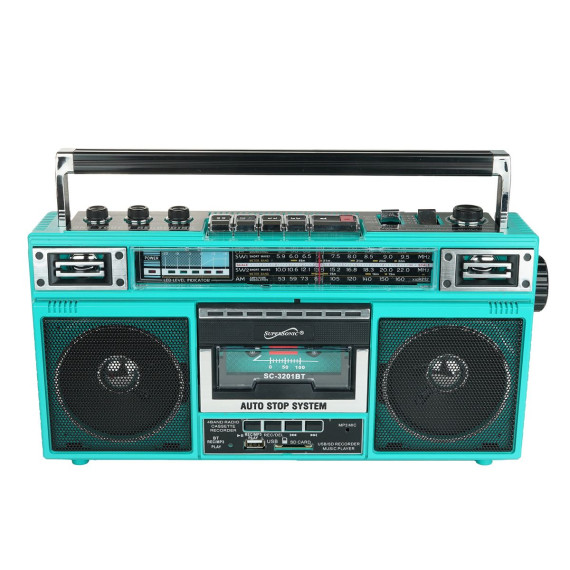 Supersonic® Retro Bluetooth® Cassette/AM/FM/Shortwave Boom Box, SC-3201BT (Blue)