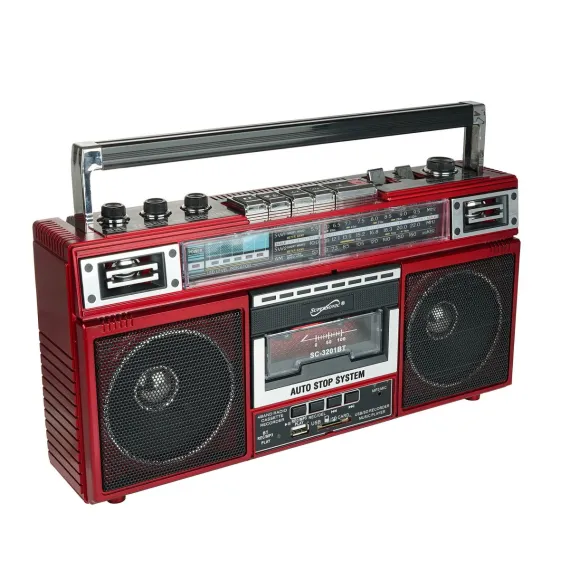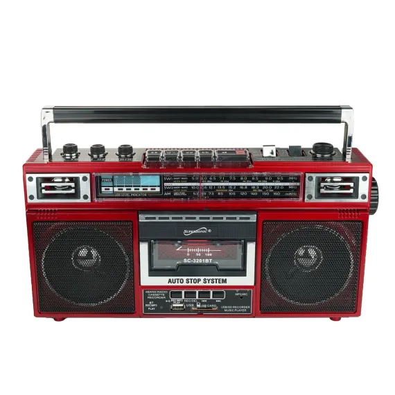 Elevate your music experience with the Supersonic® AM/FM/SW World-Band Receiver Boom Box, striking the ideal balance between nostalgia and modern functionality. This boom box appeals to kids and adults alike, thanks to its cassette player for a trip down memory lane and its compatibility with USB, SD™ Cards, and Bluetooth® for contemporary music streaming. Whether you're grooving to your favorite 80s hits or exploring the latest tracks, this boom box offers a 360° antenna for crystal clear radio reception and a 3-band EQ mode for a tailored audio experience. The boom box also offers the ability to convert cherished analog music into digital files, making it a breeze to relive your favorite tunes from cassette tapes on your own USB or SD™ Cards. With both a built-in speaker and a 3.5-mm stereo earphone jack, you can enjoy music your way, while its versatile power options, from AC to DC, make it suitable for any setting. Embrace the best of both worlds with this boom box that harmoniously blends old-school charm with cutting-edge technology.