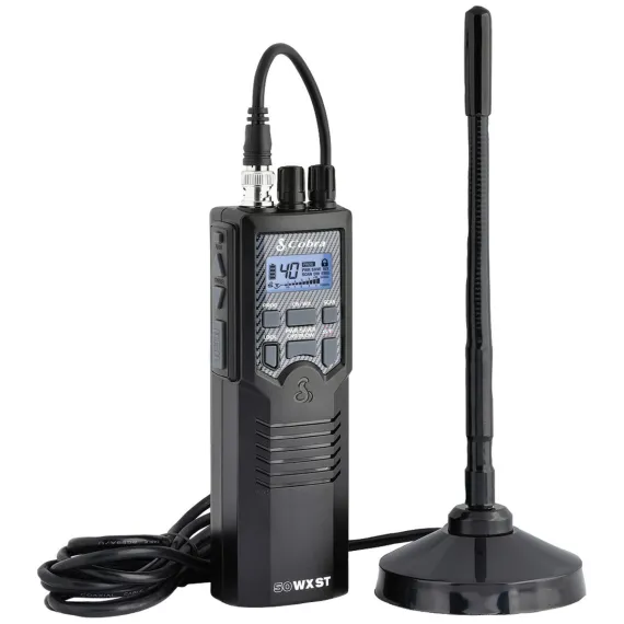 Upgrade your next road trip and stay connected with the Cobra Road Trip HH RT 50. You get 40 channels of full CB radio, 10 NOAA weather channels for up-to-the-minute forecasts on the HH 50 WXST transceiver, and a magnetic mount antenna for in-vehicle operation. This CB radio bundle is ideal for sports, recreation, or emergency use and is a great way to get in touch with friends or the over 30 million other CB radios in use across the country.
