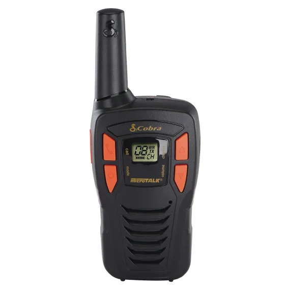 The Cobra ACXT145 is a compact, affordable, and lightweight 2-way radio/walkie talkie set for everyone from the novice to the professional radio enthusiast. This 2-Pack of walkie talkies is ideal for biking, camping, hiking, and any time you want to keep in touch, or if you need to be able to find others. With up to 16-mile range, NOAA weather alerts, roger beep tone, battery/power saver and more, the ACXT145 is ideal for clear communication, inside and outdoors.