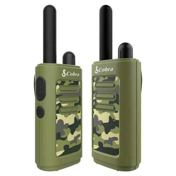 Great for families and kids! The ergonomically designed Cobra HE150 Kid's Hero 16-Mile Range Walkie Talkies in Blue are an affordable and compact option for active families. This pair of walkie talkies in camo design has up to a 16-mile range, 2 channels, call alert, and battery/power saver. You'll be able to have clear conversations inside or outdoors.