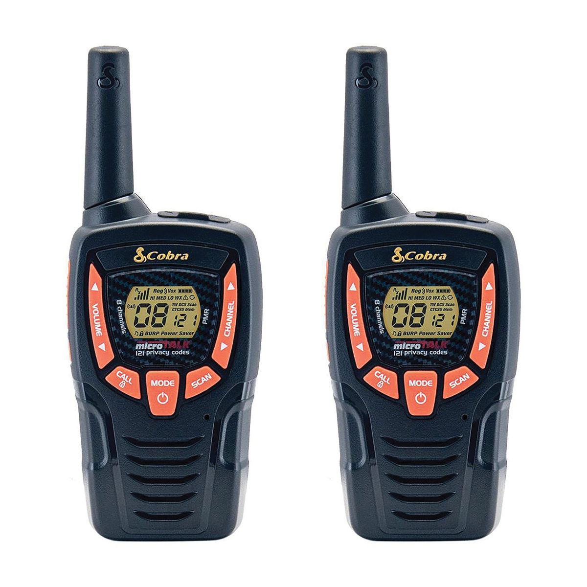 Staying in touch with your family and friends is convenient and easy when you use this pair of Cobra microTALK 2-way radios. These walkie talkies are compact yet have a range of up to 23 miles! Equipped with 22 channels (7 shared with FRS/GMRS, 7 FRS only, and 8 GMRS only), you’ll be able to communicate with others while hiking, biking, and working. 10 NOAA All Hazard weather alert radio channels will help you stay prepared. Keep track of family and friends at a crowded public event, check with travel companions in another car, talk with neighbors, and even arrange meeting spots with others while shopping at the mall. Voice-activated (VOX) transmission frees your hands for other tasks. 5 selectable tones will distinguish between different parties for incoming calls. A total of 2,662 channel combinations are available when the 22 channels are combined with the 121 privacy codes (38 CTCSS/83 DCS). These combinations prevent interference from other radios.
