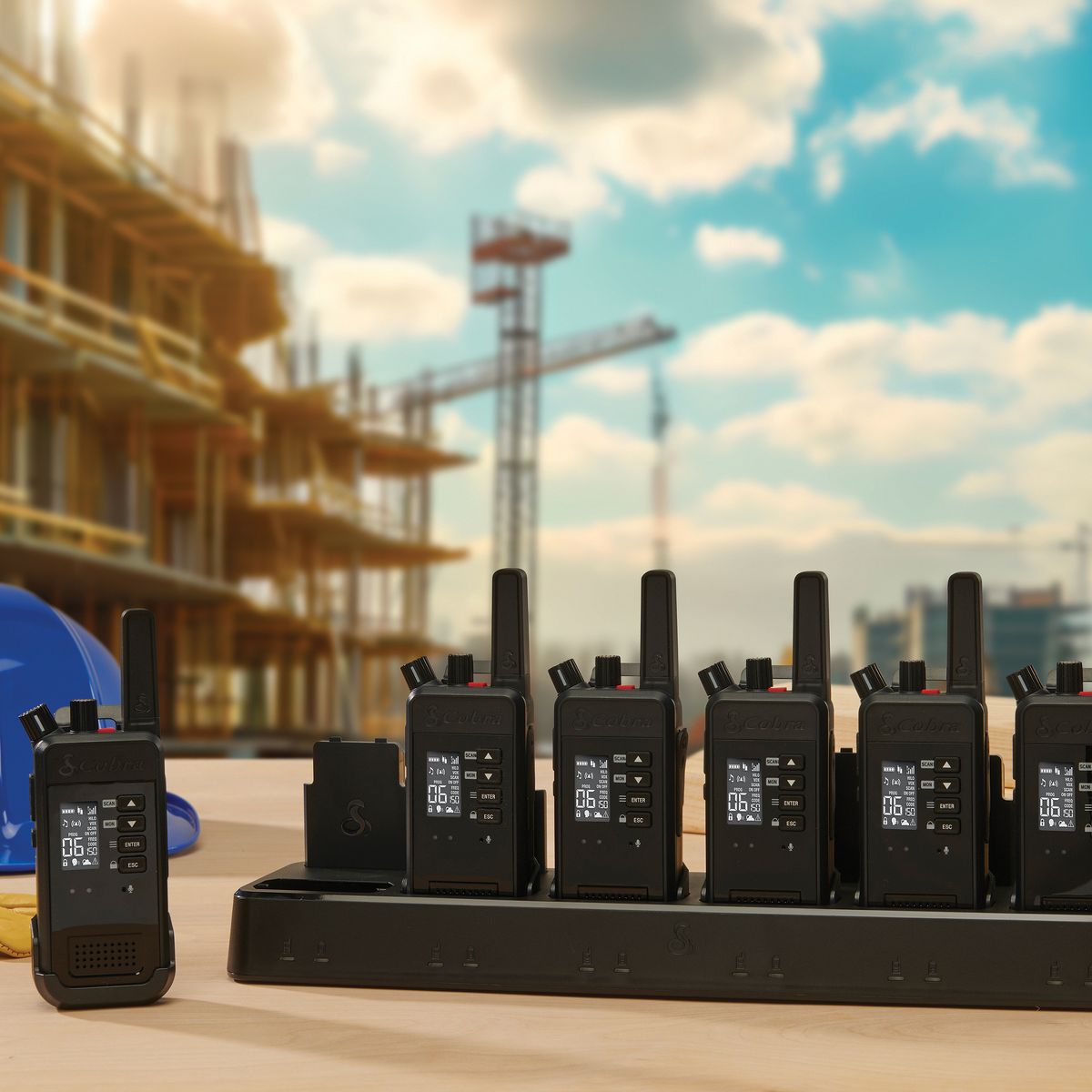 The Cobra® Performa 450 licensed 2-way radio is thoughtfully engineered and designed in the U.S. to meet the needs required to lead your workforce to the most productive results. A simple operating system allows the flexibility for multiple teams to interact on multiple channels with wireless cloning capability to streamline your connectivity. Operating on the LMR UHF frequency band, you can be assured knowing your team’s communication is protected with enhanced privacy, reducing the risk of crosstalk from other nearby radio frequencies. Other features include weather channels to alert your team of potential hazards on the job and a clear LCD screen that gives you the ability to switch to any of the available 6 channels quickly and easily. The 180° swivel holster belt clip makes accessing the radio easy, especially when a swift response is needed. The powerful Li-Ion battery is easy to swap out, and a variety of charging options by dock or cable ensure it has the juice needed for up to 18 hours, keeping your team connected over multiple shifts or a long productive day. This business radio is also competitively priced, providing clear communications that won’t hurt the bottom line.