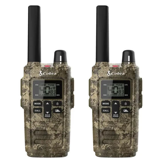 This pair of Black Cobra RX380 32-Mile Range Weather-Resistant 2-Way Radios keeps you connected wherever you go, even when out of cell service range. They are ideal for families and friends to use outdoors. The built-in NOAA radio receivers let you tune into 10 weather channels, and the available 40 channels provide extended signal range. These Cobra FRS 2-way radios are easy to use and provide clear communications.