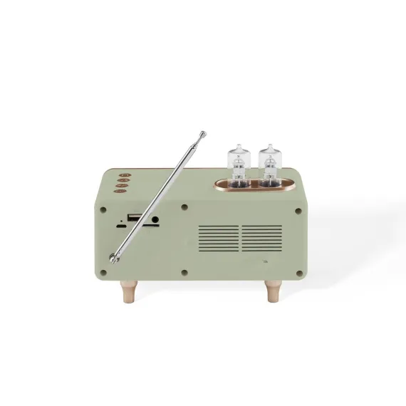 The Milton Radio transports you back in time with its vintage appearance, but there's more to it than good looks. Cycle between FM radio, aux input, USB playback, or Bluetooth. Whatever you choose, the vacuum tube style LEDs change color to indicate your mode. Add this portable radio to your nightstand or countertop for a taste of the past with modern-day function.
