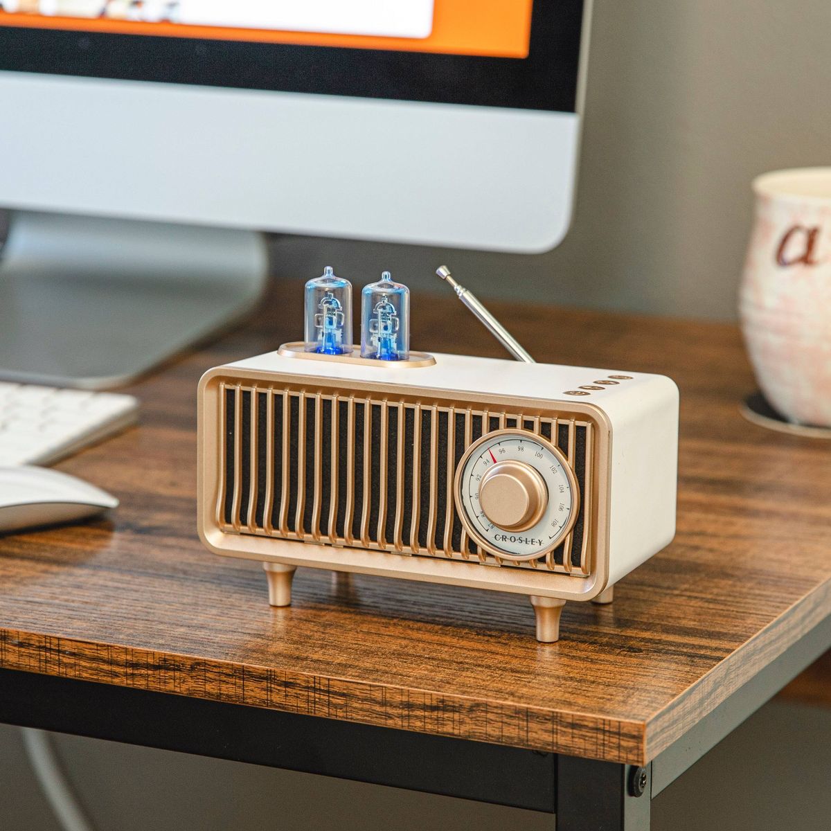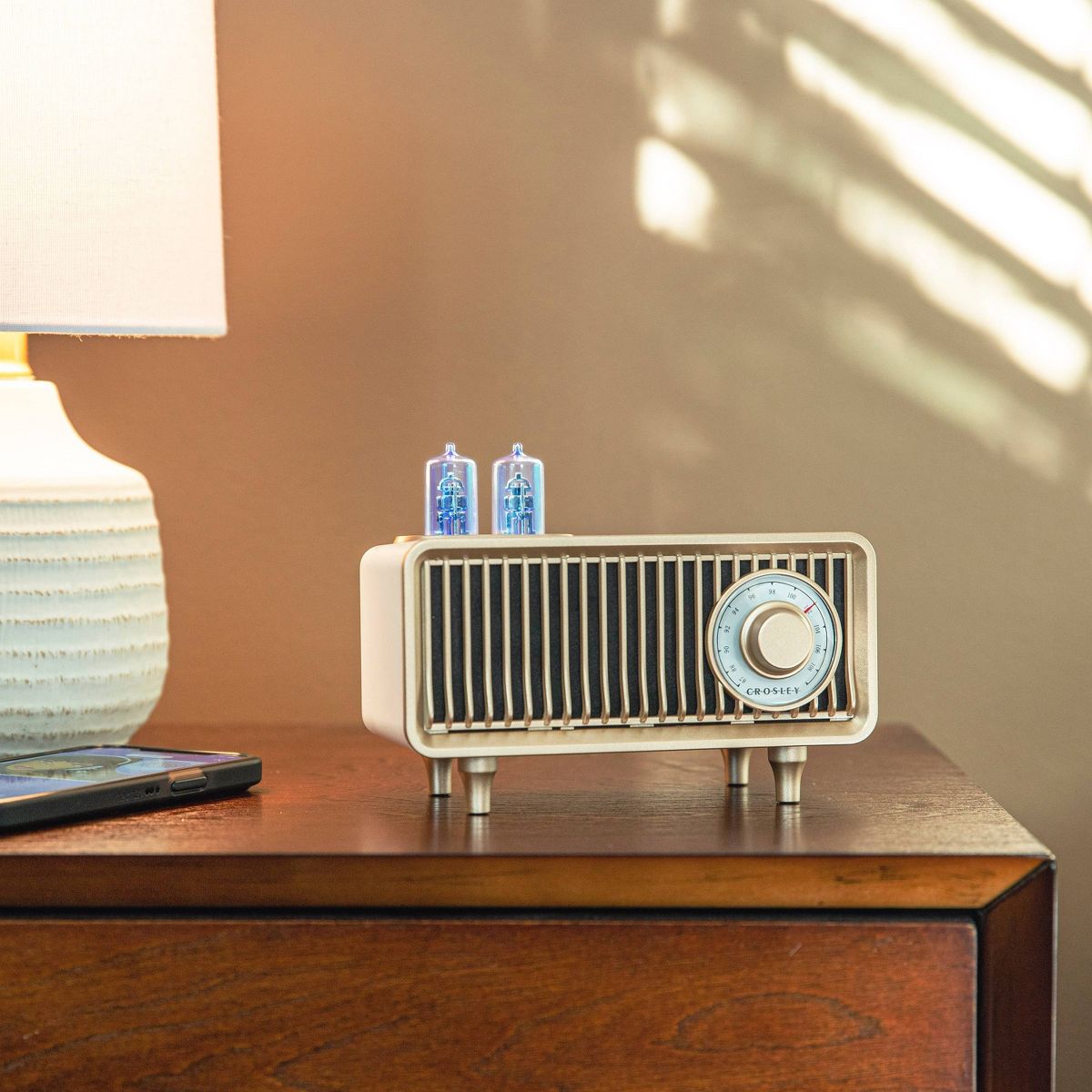 The Milton Radio transports you back in time with its vintage appearance, but there's more to it than good looks. Cycle between FM radio, aux input, USB playback, or Bluetooth. Whatever you choose, the vacuum tube style LEDs change color to indicate your mode. Add this portable radio to your nightstand or countertop for a taste of the past with modern-day function.