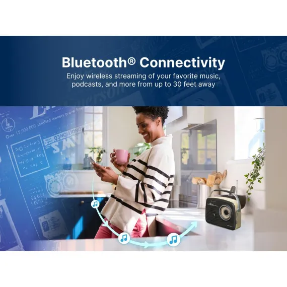 Emerson EAS-3002 Portable Retro Radio with Built-in Rechargable Battery, Espresso