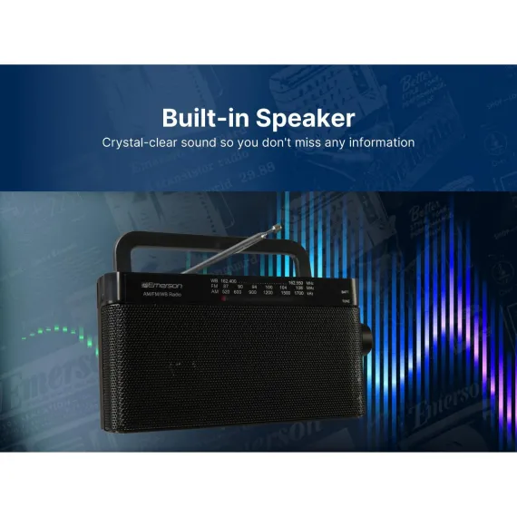 Emerson ER-7004 AM/FM/WB Radio, Lightweight Portable Weather Radio with Telescoping Antenna
