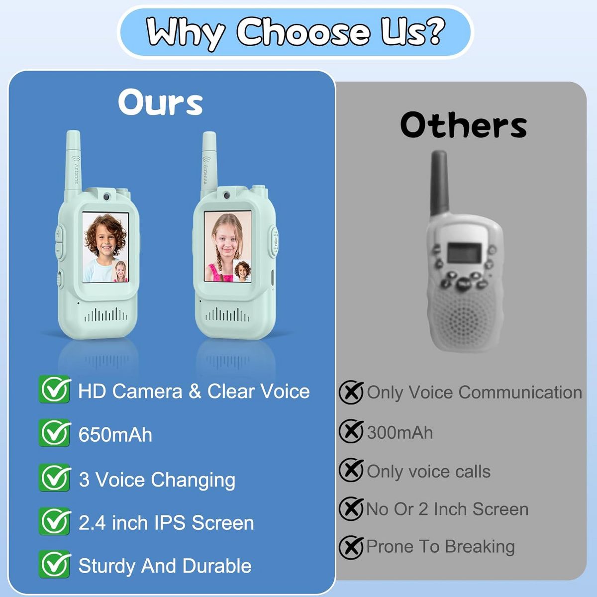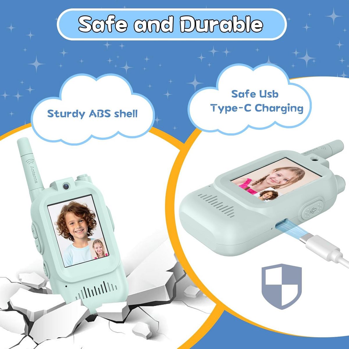 FAAYFIAN Video Walkie Talkies for Kids, 2 Pack, Rechargeable, Handheld For Camping And Hiking, gift-ready for gifting, with Screen