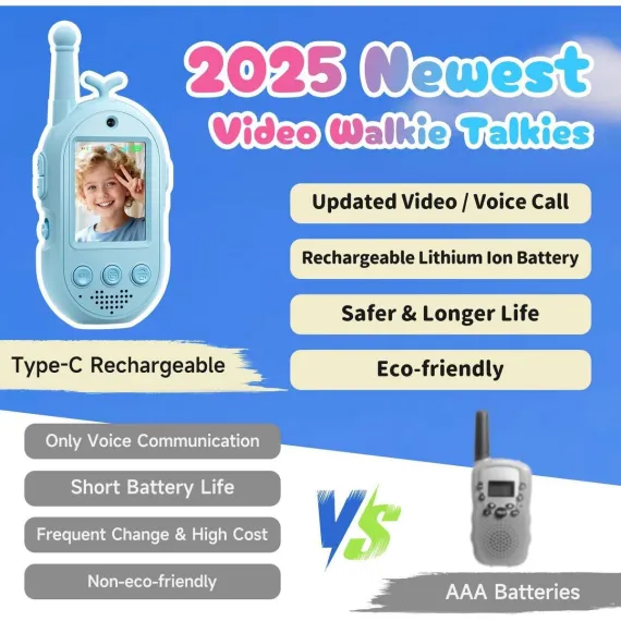 FAAYFIAN Video Walkie Talkies for Kids, 2 Pack, Rechargeable, Handheld, Long Range For Camping And Hiking, gift-ready for gifting