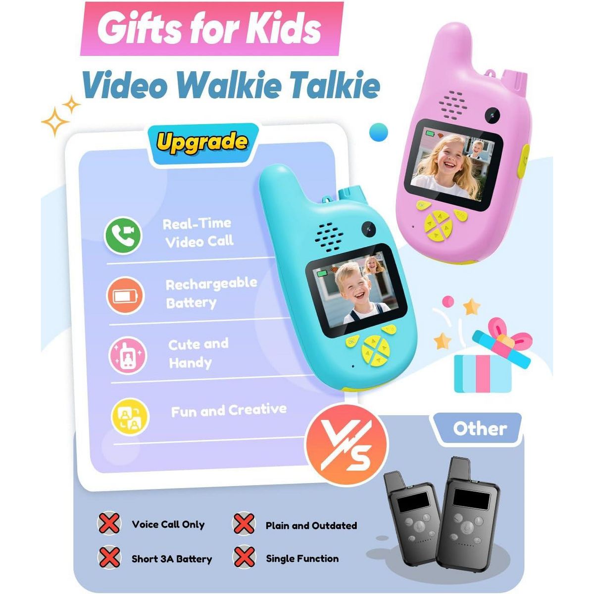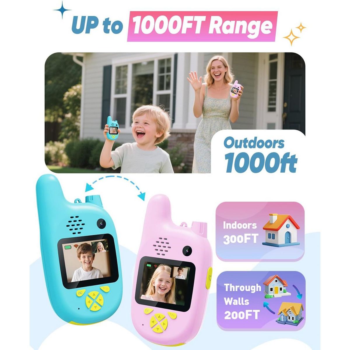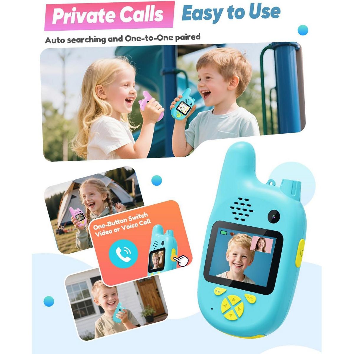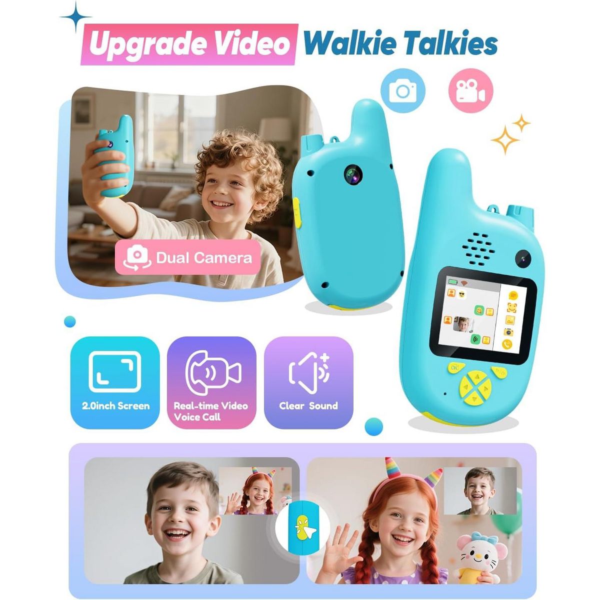 A video walkie talkies set gives kids a simple way to talk and share moments during everyday adventures. This set is a video walkie talkies option for everyday play, helping kids coordinate games and share quick moments with friends and family. The listing mentions gift or birthday ideas, so it can be a gift-ready pick for gifting. The listing highlights features that keep play moving while staying easy to understand. Video and audio communication can make pretend adventures feel more real. A voice changer mode adds variety to role play and silly check-ins. For distance, the listing notes long-range transmission , which can vary by environment. Use it for outdoor play, hide-and-seek, yard, park when kids want to stay connected and coordinate turns. For repeat use, rechargeable power can be convenient, and push-to-talk style controls help kids start chatting quickly. Follow the provided instructions, keep devices dry, and handle with care during active games. Refer to listing details for exact specs. Quick Notes: - Setup & Use: Charge and set channels or modes as the listing instructs, then practice short messages so kids learn timing. - Safety & Notes: Use with supervision for younger children and keep devices away from water. Follow the included guidance for best results. - Storage & Space: Store units and any listed accessories together so everything is ready for the next play session. - Performance/Use Case: Long range is described and can change with