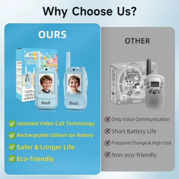 FAAYFIAN Video Walkie Talkies for Kids, 2 Pack, Rechargeable, Handheld, Voice Changer, Push-to-Talk, Long Range , gift-ready for gifting