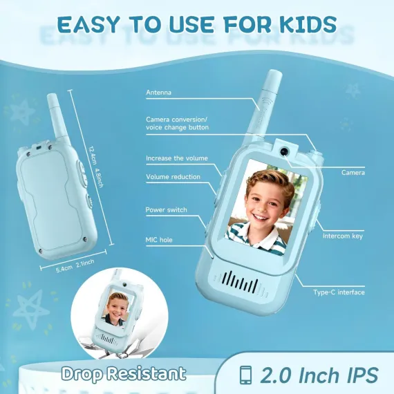 Fun features like voice changer turn quick check-ins into part of the game, whether kids are exploring indoors or outdoors. This set is a video walkie talkies option for everyday play, helping kids coordinate games and share quick moments with friends and family. The listing mentions gift or birthday ideas, so it can be a gift-ready pick for gifting. The listing highlights features that keep play moving while staying easy to understand. Video and audio communication can make pretend adventures feel more real. A voice changer mode adds variety to role play and silly check-ins. For distance, the listing notes long-range transmission with figures like 100m, 400m , which can vary by environment. Use it for camping, outdoor play, indoor play, playdates when kids want to stay connected and coordinate turns. For repeat use, rechargeable power can be convenient, and push-to-talk style controls help kids start chatting quickly. Follow the provided instructions, keep devices dry, and handle with care during active games. Refer to listing details for exact specs. Quick Notes: - Setup & Use: Charge and set channels or modes as the listing instructs, then practice short messages so kids learn timing. - Safety & Notes: Use with supervision for younger children and keep devices away from water. Follow the included guidance for best results. - Storage & Space: Store units and any listed accessories together so everything is ready for the next play session. - Performan