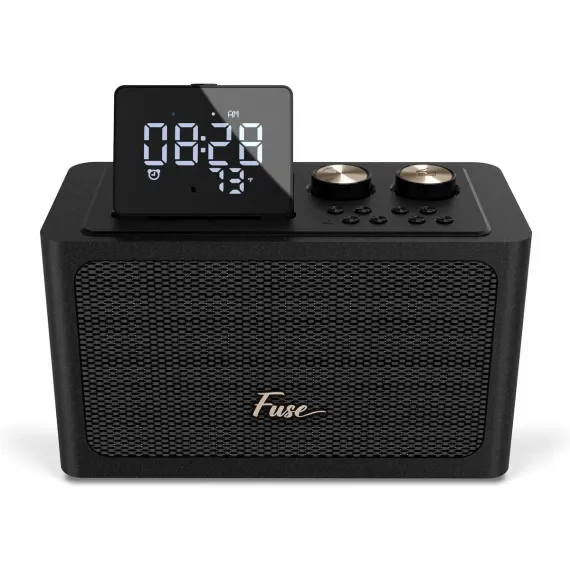 Fuse Zide Vintage Alarm Clock Radio | FM Radio Speaker with Bluetooth | Built-in Microphone | Adjustable LCD Screen | Mid Century Modern Style
