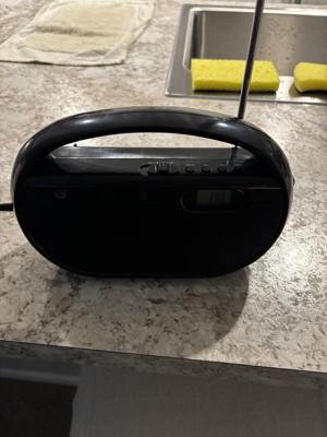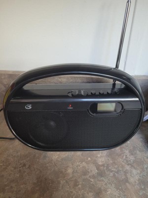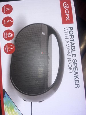 GPX Portable AM/FM Radio: Built-In Digital Clock & Speaker, 3.5mm Jack, Black