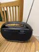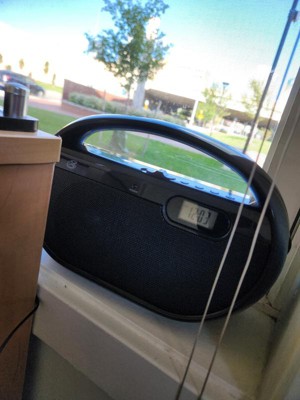 Tune into music, radio, traffic, and weather on this compact AM/FM radio or use the Aux in to connect to a device for even more listening options. Listen through the built-in speakers or with headphones (built-in headphone jack) for private listening. Plug it in (AC/DC adapter included) or use battery power and the built-in handle to take your music with you wherever you go.