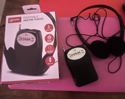 Listen to your favorite stations anywhere with the GPX® Portable AM/FM Radio! Now you can listen to music, news, and talk radio indoors or on the go. It has a telescoping antenna and analog volume control. The portable radio does have a built-in speaker but, for private listening, use the included pair of wired, 3.5-mm stereo earbud headphones. It operates on 2 AAA batteries, which are not included.