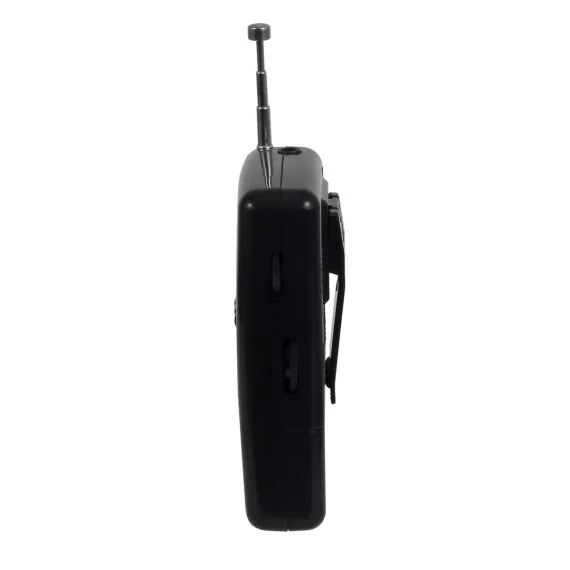 The JENSEN MR-80 AM/FM Portable Pocket Radio is portable and convenient. Take it to the beach, the ball game, or anywhere else you want to listen to your favorite AM or FM broadcast. Enjoy clear, static-free audio from the built-in speaker on this compact and durable device. The MR-80 comes with a snap-in belt clip, telescopic antenna, and earphone jack and also operates on two (2) x "AAA" batteries (Not included). An affordable, easy way to listen to music on the go.