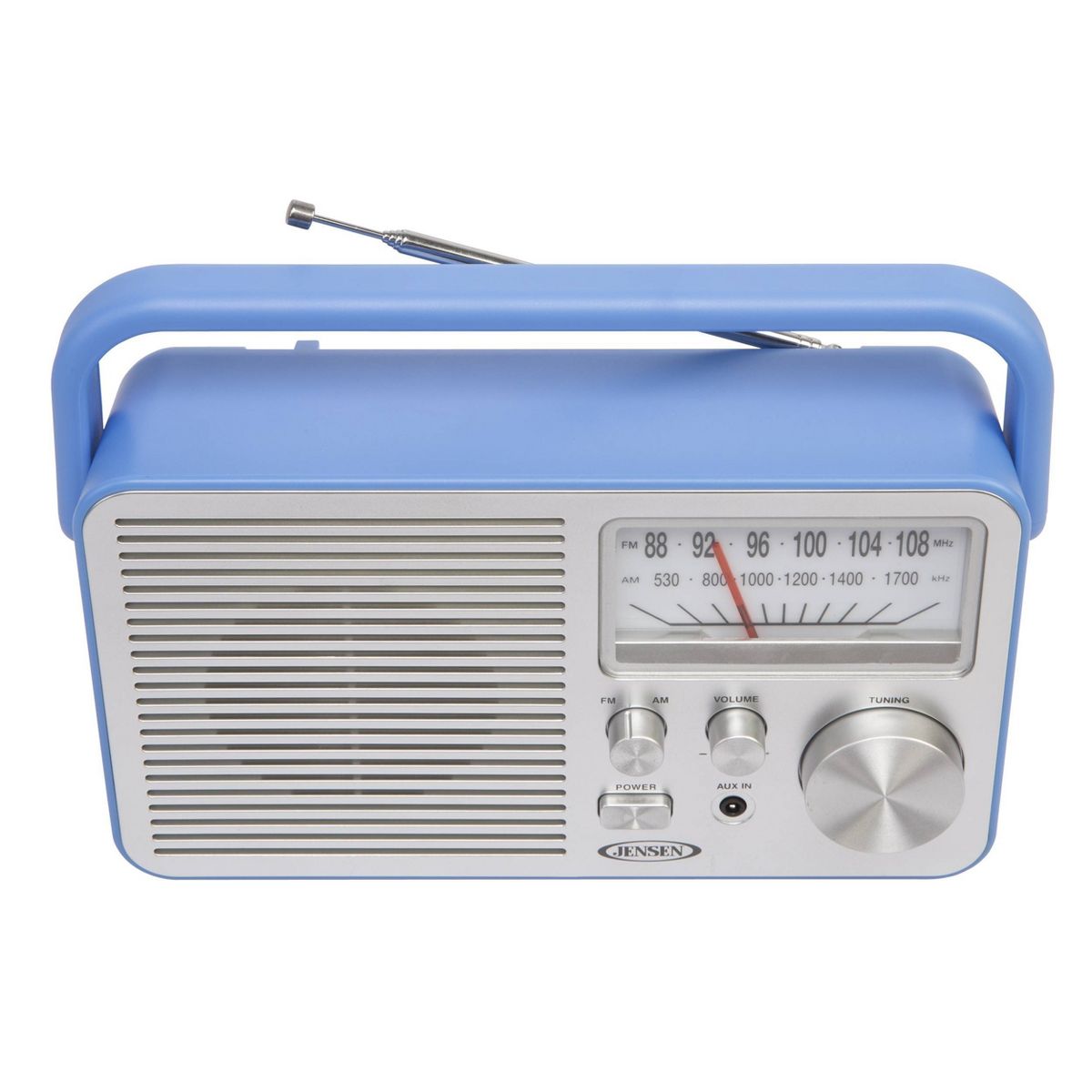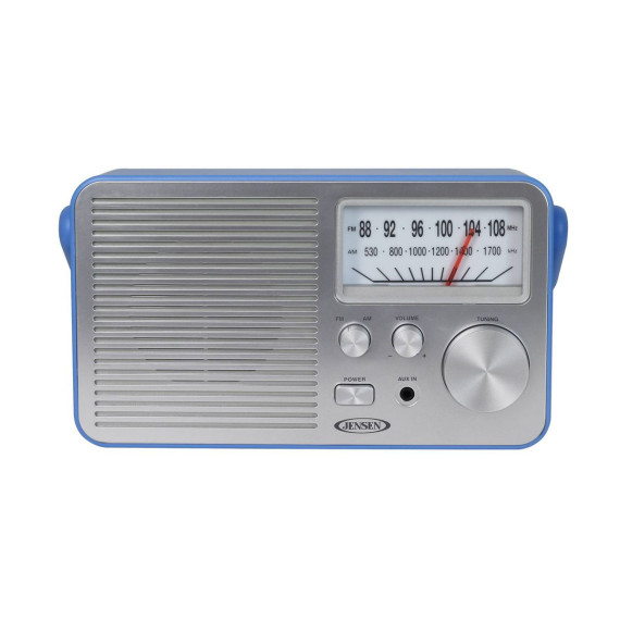 Jensen Portable AM/FM Radio - Blue: Built-In Antenna & Speaker, 3.5mm Jack, AC Adapter