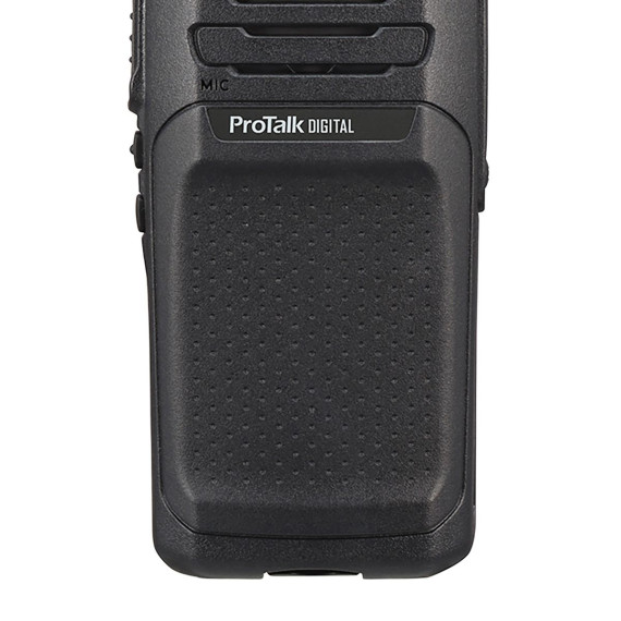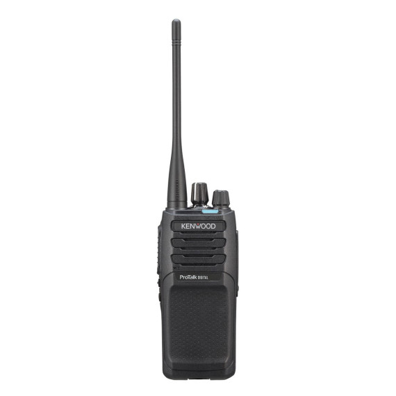 The KENWOOD ProTalk NX-P1300NUK is a 5-watt, 16-channel UHF portable 2-way radio that allows the combination of analog and digital channels in the same zone. This gives you the ability to easily migrate to digital at your own pace or operate more effectively in a mixed environment where groups of users have different needs or solutions. It employs NXDN, an FDMA digital air interface with AMBE+2 voice coding technology, with forward error correction and unique filtering to obtain superior coverage even at weak RF signal strengths. As RF signal strength weakens with distance, analog reception becomes increasingly noisy. NXDN digital modulation technology improves audio recovery in fringe areas, thereby “effectively” increasing the usable coverage compared to analog. It is also built to take rough treatment in stride, passing the demanding IP54/55 dust- and water-intrusion tests—both with and without the KMC-45 optional speaker microphone. It also meets or exceeds 11 stringent MIL-STD 810 C/D/E/F/G environmental standards, including “driven rain.” A large 7-color LED indicator on the top panel illuminates to notify multi-status functions. Confidentiality in radio communications is a KENWOOD priority, and helping to maintain a high level of security in analog mode is a 16-code voice inversion scrambler and a 15-bit encryption in digital mode. This walkie-talkie requires an FCC license, comes with an industry-leading 3-year warranty, and is DMR capable with license upgrade.