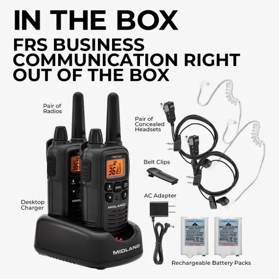 The LXT600BB Business Radio Bundle is an affordable and convenient communication option that is ready for use right of the box. The radios require no FCC license to own or operate, saving you time and money. The LXT600BB is ideal for businesses where efficiency is key within small to medium sized spaces, including restaurants, retail stores, boutiques, small offices, and warehouses. This business bundle comes complete with a pair of radios, two rechargeable battery packs, a dual slot desktop charger, and a pair of concealed headsets for unobtrusive communication. The radios feature 36 channels, silent operation, eVox for hands-free operation, and NOAA Weather Alert technology. Make sure your team always has access to clear, consistent communication with the LXT600BB Business Radio Bundle.