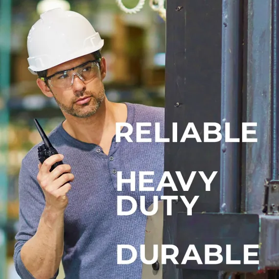 The MB400 BizTalk Business Radio is an industrial grade on-site business radio designed for demanding business environments of all types. While this radio is relatively compact in size, it is big on performance, carrying an IP67 waterproof rating and a full 4 watts of transmit power. This radio will provide you coverage for up to a 350,000 square foot warehouse. Ready to use right out of the box, this radio comes with 16 pre-programmed business band channels or can be custom programmed using the free programming software. The MB400 offers cloning capabilities, making it easy to program an indefinite amount of radios. This radio is a perfect communication option for warehouses, construction sites, office buildings, car dealerships, schools, hotels, apartment complexes, and more. A full line of MA series accessories are available to customize your radio experience. Make sure your business is running as smoothly as possible with the MB400® BizTalk Business Radio.