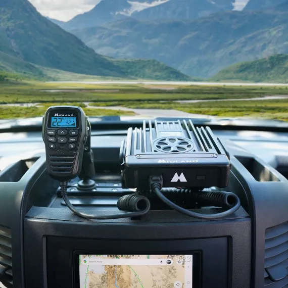 Midland’s MXT575 boasts the maximum GMRS power allowed by law- 50 Watts and a Fully-Integrated Control Microphone that allows for hiding away, combining impressive range and a sleek design for in-vehicle communications.