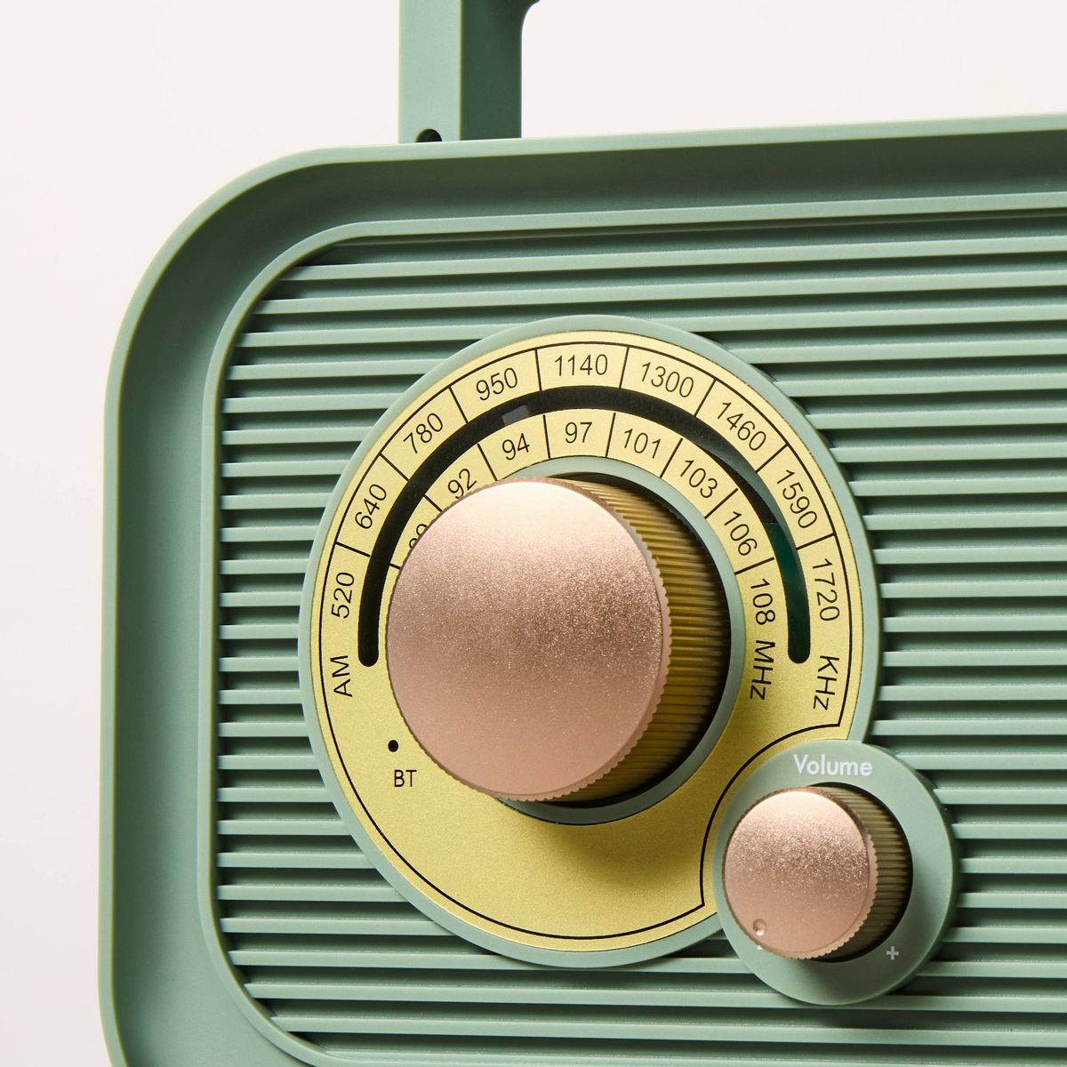 This Portable Radio from Hearth & Hand™ with Magnolia blends vintage-inspired style with everyday charm. Designed with a navy body accented by warm brass-tone details, this portable radio offers both AM/FM radio and Bluetooth feature so you can switch easily between broadcasts and wireless streaming. A telescoping antenna helps improve reception, and the micro USB port allows easy recharging.