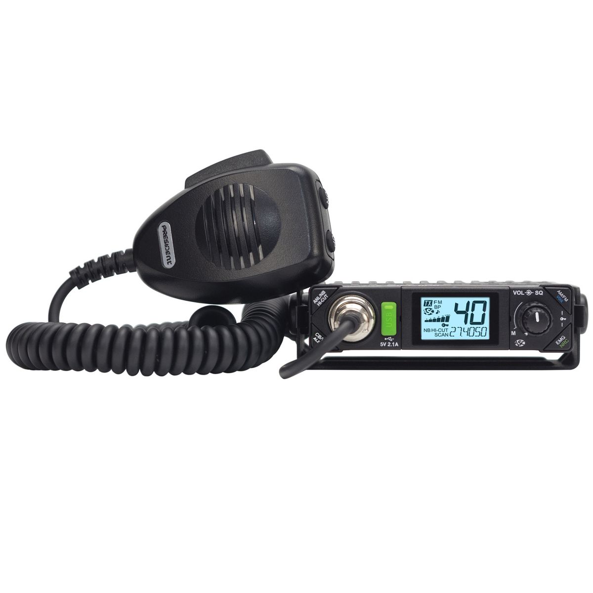 PRESIDENT ELECTRONICS BILL III FCC 40-Channel 12-Volt AM/FM Weatherband Ultracompact CB Radio with P-Channels and NRC, TXUS201-1 in Black
