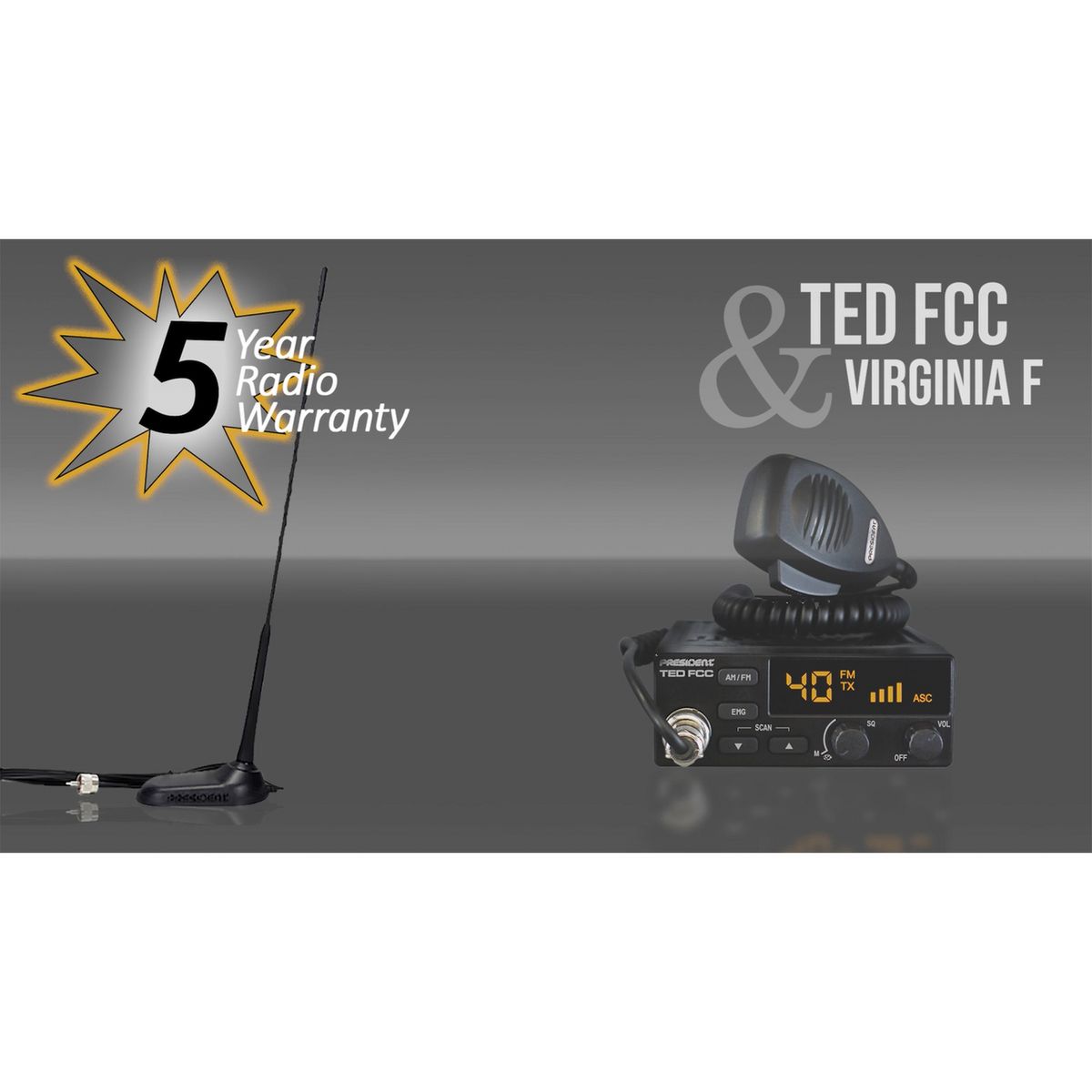 Get started with CB communication with this PRESIDENT TED AM/FM CB Radio and VIRGINIA-F Antenna Starter CB Radio Kit. It is a dependable, budget-friendly solution for CB radio beginners and experienced users alike. Ideal for all types of vehicles, this starter CB radio kit provides an affordable and convenient way to enjoy CB communication without the hassle of sourcing separate components. The TED is known for its reliable signal reception, clear audio, and compact size. The Virginia F is a powerful, compact fixed-angle whip antenna that easily attaches to any vehicle with its strong magnetic base – no drilling required! Whether you are hitting the road, preparing for off-grid adventures, a novice, or a pro, this CB starter kit ensures seamless and dependable connectivity wherever you go.
