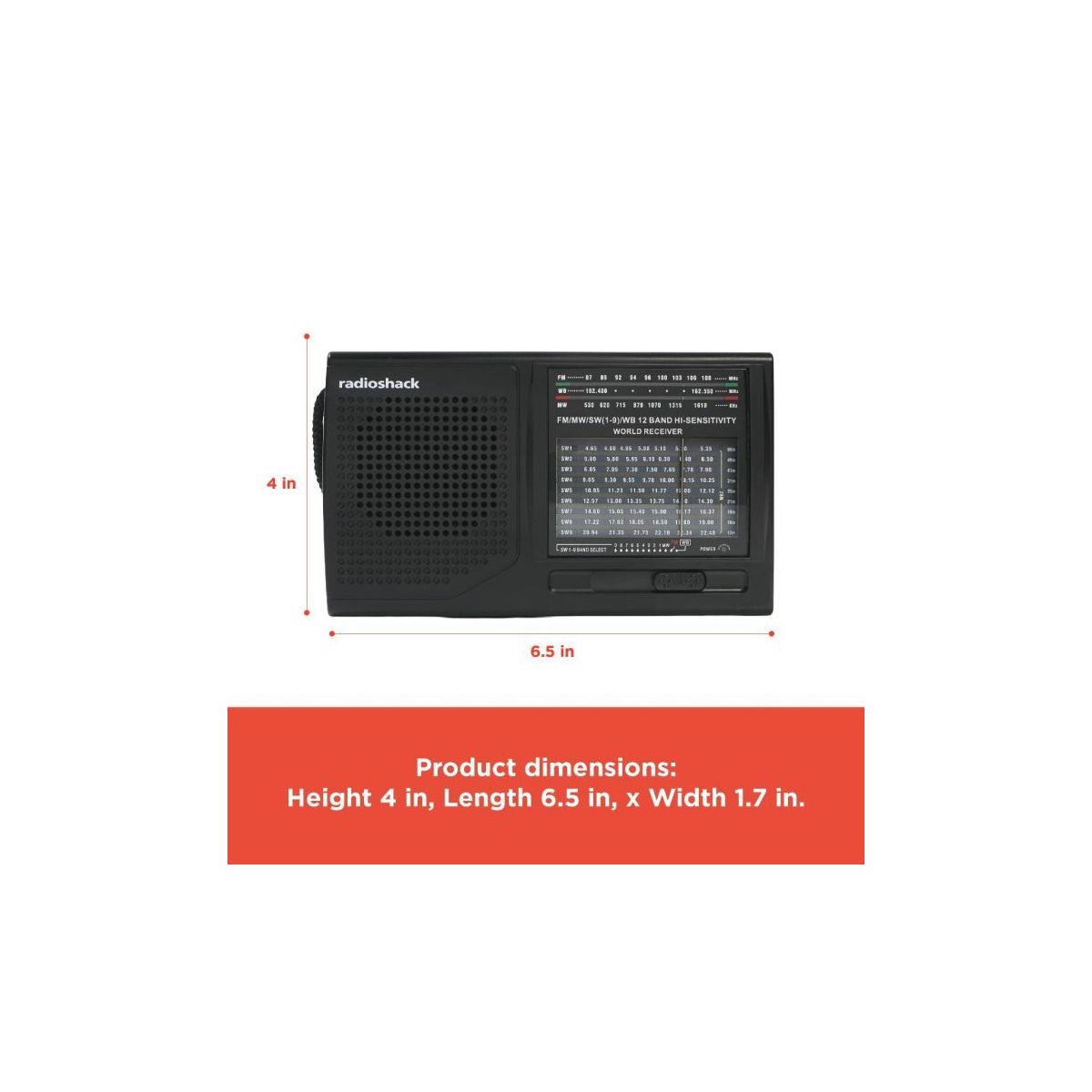 RadioShack Multi-Band Portable Radio, AM/FM/SW1–9, Weather Band, Global Broadcast Reception, Telescopic Antenna, D Battery Powered