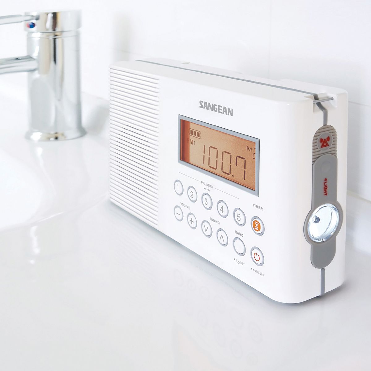 Sangean® H201 Portable 3-Band AM/FM/Weather-Alert Water-Resistant Shower Clock Radio in White
