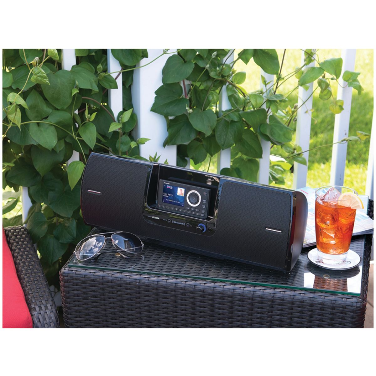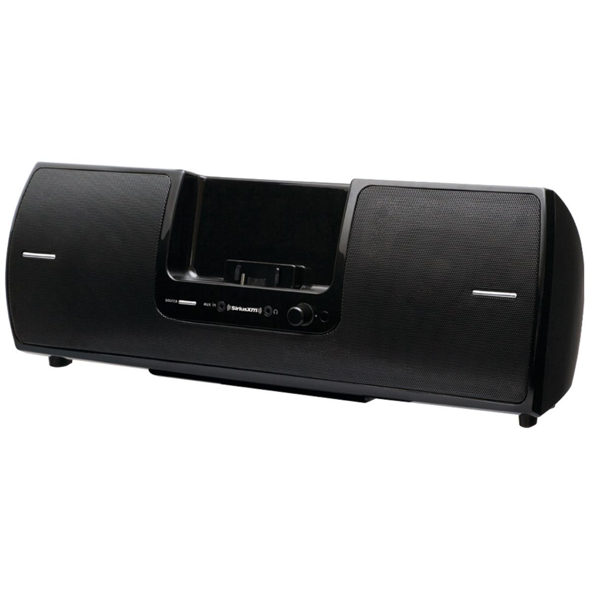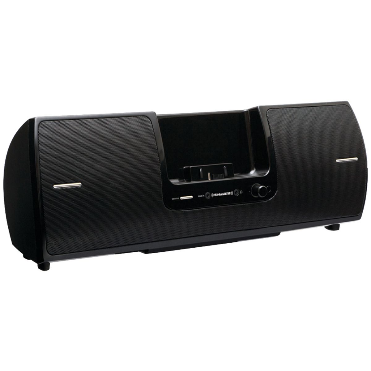 The SiriusXM Dock and Play Universal Boombox features a sporty design and great sound. It works with all SiriusXM Dock and Play radios with universal docking capability.