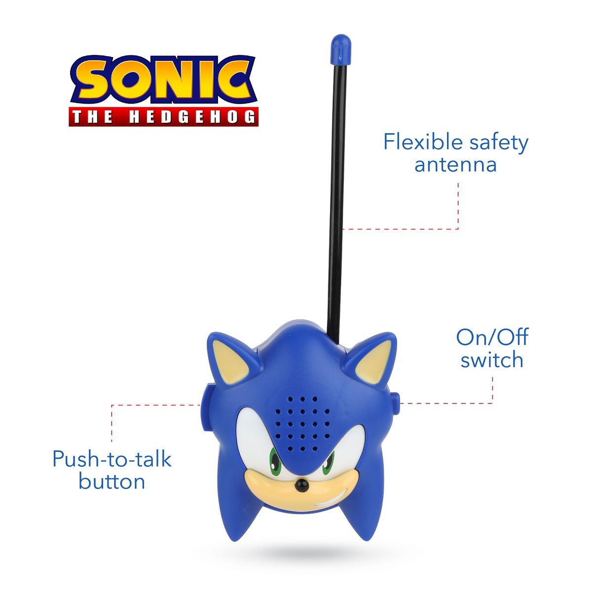 Sonic the Hedgehog Molded Walkie Talkie for Kids 2-Pack - Outdoor toy, Safe and Flexible Antenna and Belt Clip