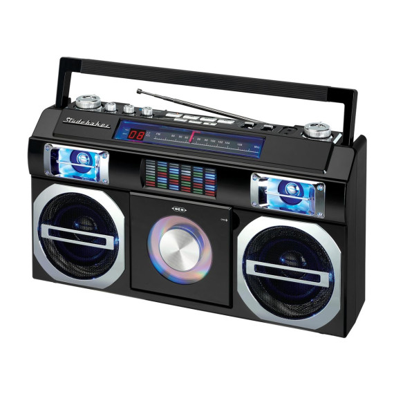 Studebaker 80's Retro Street Bluetooth Boombox with FM Radio, CD Player, LED EQ (SB2145) - Black