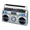 Reminiscent of the boomboxes of old, this portable CD Player with FM Analog Radio also includes Bluetooth connectivity for streaming music. The front loading CD player is CD-R/RW compatible. This unit comes with an auxiliary input jack and headphone jack. Other great features include built-in stereo speakers, rotary volume control, treble and bass adjustments and a convenient carrying handle. A multi-color LED Equalizer adds an exciting visual to this awesome looking unit. There is also a built-in AC transformer and built-in rechargeable battery.